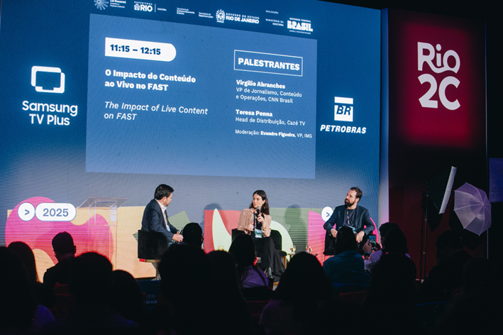 Na última semana, com o tema de FAST, o Samsung TV Plus dominou o Rio2C, levando importantes nomes do cenário para apresentar ao público um pouco mais sobre o ecossistema que faz com que o modelo de streaming funcione, explicando as principais engrenagens da máquina, como estratégias para crescer, como criar um canal, quais conteúdos impactam os brasileiros, como os dados são utilizados e quais as formas de monetizar com uma plataforma ou canal em FAST. Foi um dia inteiro dedicado ao tema, com seis painéis – que contaram com speakers nacionais e internacionais – promovidos pelo Samsung TV Plus