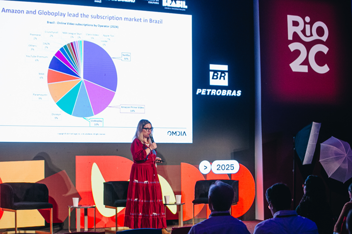 Apesar de novo, os streamings de FAST estão entre os 10 aplicativos mais assistidos no Brasil, como apontou Maria Rúa Aguete, Head de Monitoramento e Avaliação da OMDIA, empresa independente responsável por análises especializadas na cobertura global de Telecomunicações, Mídia e Tecnologia. Em seu painel, Maria apontou que o Brasil sente essa necessidade por conteúdos gratuitos de boa qualidade e isso faz com que o FAST esteja chamando atenção dos espectadores. Segundo os dados apresentados, mais de 45% dos usuários de TVs Smart assistem aos conteúdos disponibilizados no aplicativo Samsung TV Plus. O Brasil se destaca dentro da América Latina como líder regional e o segundo maior mercado internacional em faturamento, saindo de pouco mais de US$ 100 milhões em 2024 para uma previsão de US$ 303 milhões em 2029, de acordo com dados apresentados por Maria.