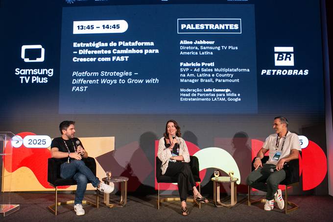 A curadoria de conteúdo – como o ao vivo – é apenas um dos pilares para a construção de uma plataforma de sucesso. No Painel ‘Estratégias de Plataforma – Diferentes Caminhos para Crescer com FAST’, Aline Jabbour e Fabricio Proti –SVP de Ad Sales e Multiplaforma LATAM e Country Manager Brasil da Pluto – compartilharam as jornadas do Samsung TV Plus e Pluto, respectivamente, com um crescimento constante, levando em conta elementos fundamentais para o sucesso, como conteúdo relevante que ressoe com a audiência local, refreshs constantes, oferta de canais de nicho para atender às demandas de um público específico, melhorias contínuas na interface, garantindo a melhor experiência para o usuário, e um refinamento criterioso da oferta, permitindo que o público tenha acesso à conteúdo de qualidade, totalmente grátis. O painel contou com a moderação de Luís Camargo, Head de Parcerias para Mídia e Entretenimento LATAM da Google, trazendo seu olhar e expertise do mundo digital. O consenso do painel foi que o termo FAST é algo da indústria, mas, trazendo para a realidade user-centric, “FAST é TV”, afirmou Aline.